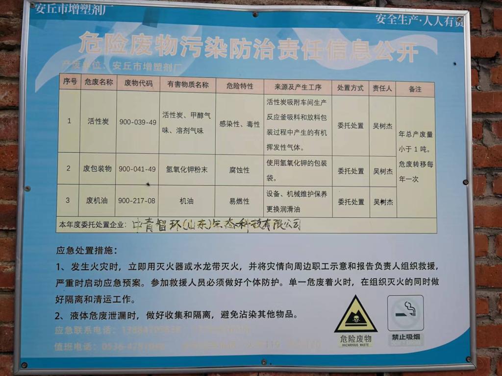 安丘市增塑劑廠危險(xiǎn)廢物污染防治責(zé)任信息公開