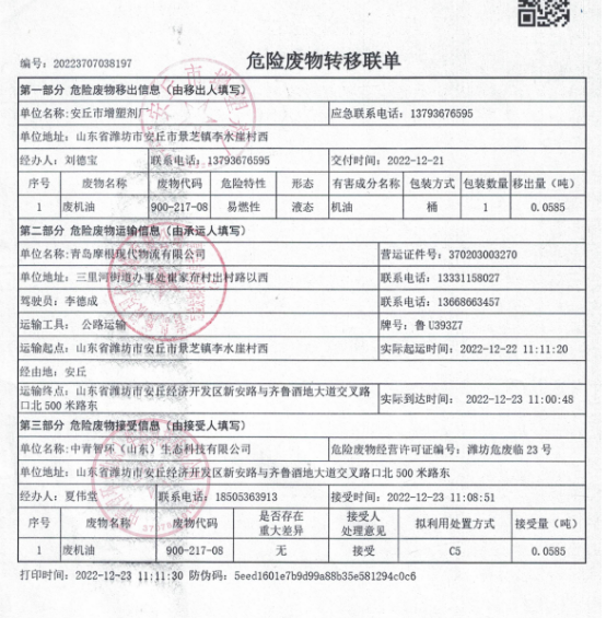 危險廢物轉移聯(lián)單